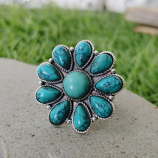 flower shape Turquoise Gemstone Boho Ring - 925 Sterling Silver Ring - Turquoise Ring - Bohemian Ring - Turquoise ring- Rings - Gift for