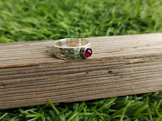 Garnet 925 Sterling Silver Band Ring - Boho Statement Band - Hand Crafted Bohemian Ring - 925 sterling silver- Garnet Band - Gift for Both
