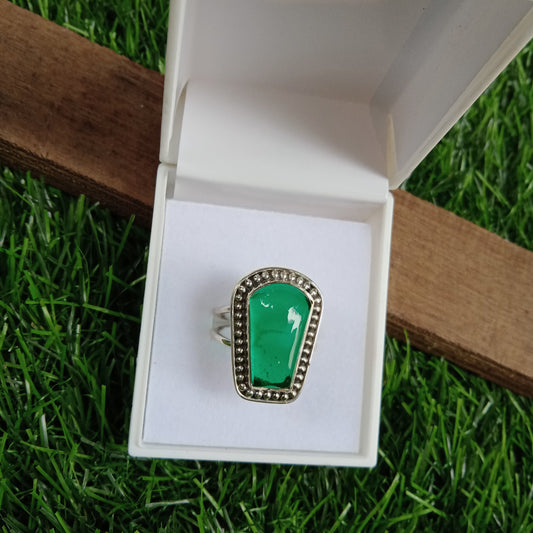 Emerald Glass 925 Sterling Silver Ring - Hand Crafted Big Shape Ring - Bohemian Emerald Glass silver Ring - Gift for her - summer gift