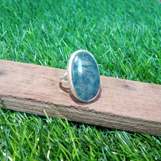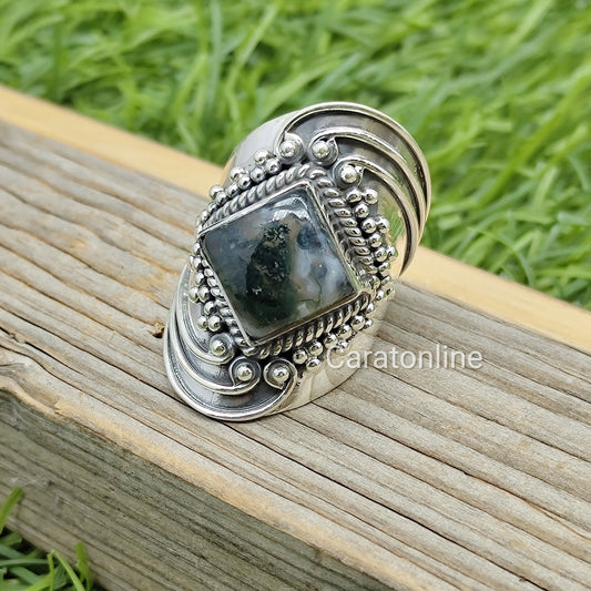 Moss Agate Gemstone Ring -925 Sterling Silver Ring - Hand Crafted Bohemian Ring- Moss Agate Ring- Rings - Gifts for her -statement ring