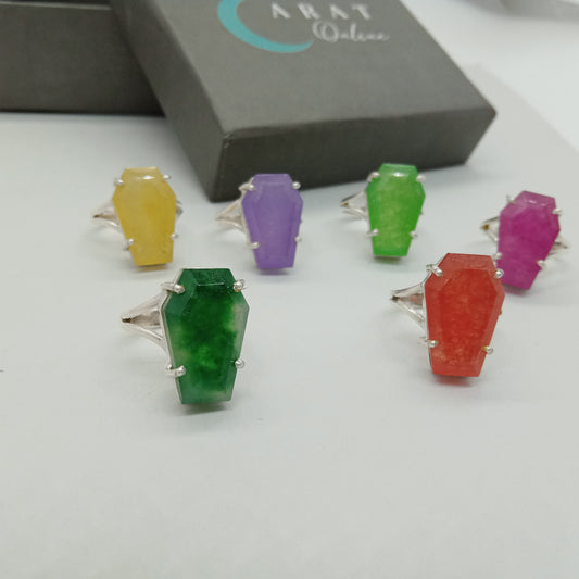 Mystic Glass Coffin Shape Sterling Silver Ring - Hand Crafted Coffin Shape Ring - Bohemian Mystic Glass Ring - Gift for her - summer gift