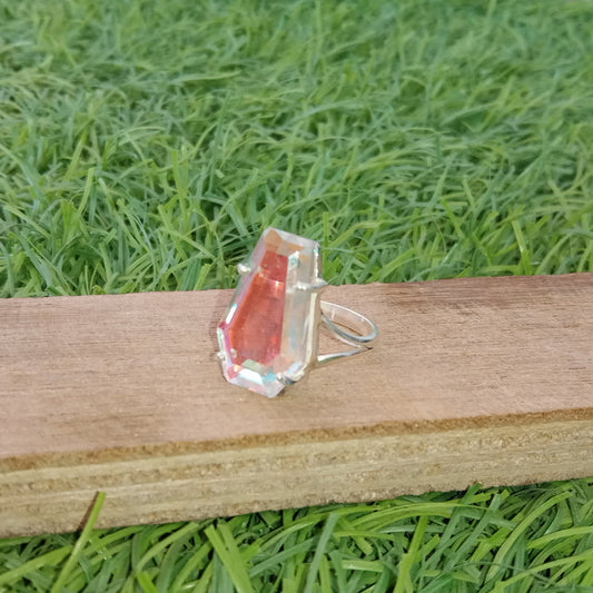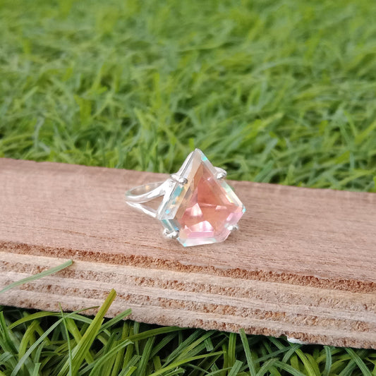 Mystic Glass Sterling Silver Ring - Hand Crafted Ring - Mystic Glass Gemstone- Bohemian Mystic Glass Ring - Gift for her - summer gift