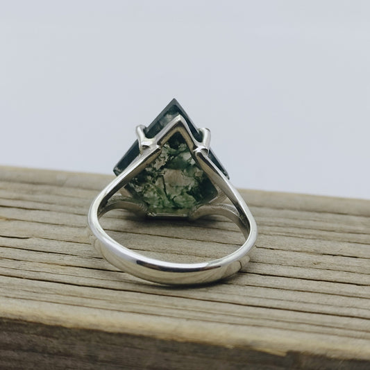 Moss Agate Sterling Silver Ring - Boho Statement Ring - Hand Crafted Bohemian Ring - Bohemian Ring - Moss Agate Ring - Rings - Gift for her