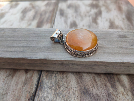 Pendentif en calci orange naturel en argent sterling 925 massif, magnifique pendentif en calci orange, pendentif bohème cadeau pour elle - Pendentif orange
