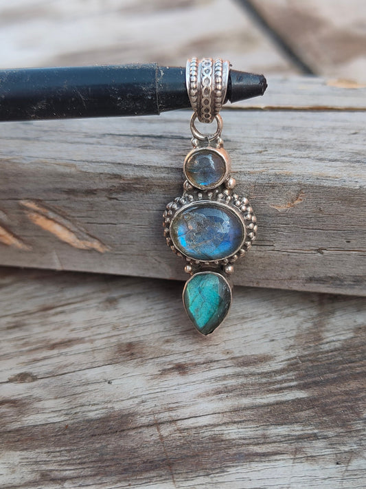 Pendentif triple labradorite fait main en argent sterling 925 massif, magnifique pendentif labradorite, pendentif bohème cadeau pour elle