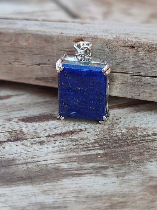 Pendentif Lapis fait main en argent sterling massif 925, magnifique pendentif Lapis de forme carrée, pendentif lunette cadeau pour elle