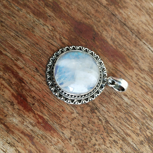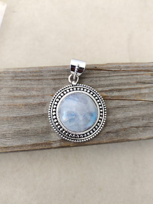 Pendentif en pierre de lune arc-en-ciel en argent sterling 925 massif | Magnifique pendentif en pierre de lune arc-en-ciel fait à la main | Pendentif bohème à offrir en cadeau pour elle