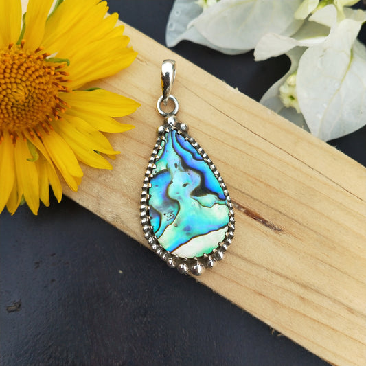 Pendentif en coquillage d'ormeau en argent sterling 925 massif | Magnifique pendentif en coquillage d'ormeau fait main | Pendentif bohème à offrir en cadeau pour elle