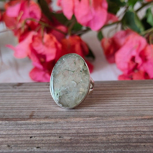 Bague en argent sterling avec quartz rutile vert, bague en argent 925 avec pierre précieuse, alliance bohème, bagues en argent, bague faite à la main, cadeau pour elle