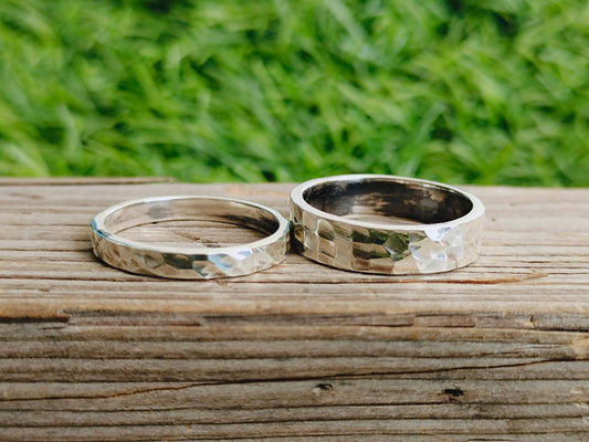 Bague empilable en argent martelé - Lot de 4 bagues - Bague bohème martelée 925 - Bagues empilables - Bague en argent sterling 925 - Bague Midi