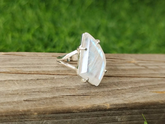 Bague en argent sterling avec pierre de lune arc-en-ciel - Bague en forme de feuille - minimaliste - Pierre de lune arc-en-ciel - livraison gratuite - Meilleure vente Etsy