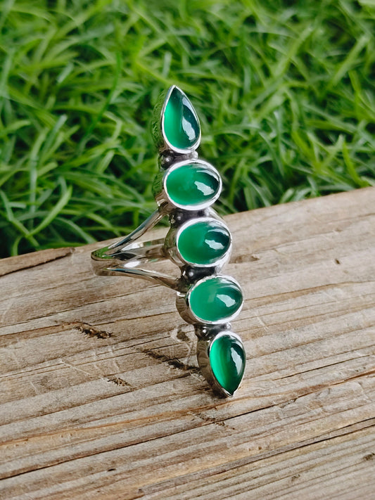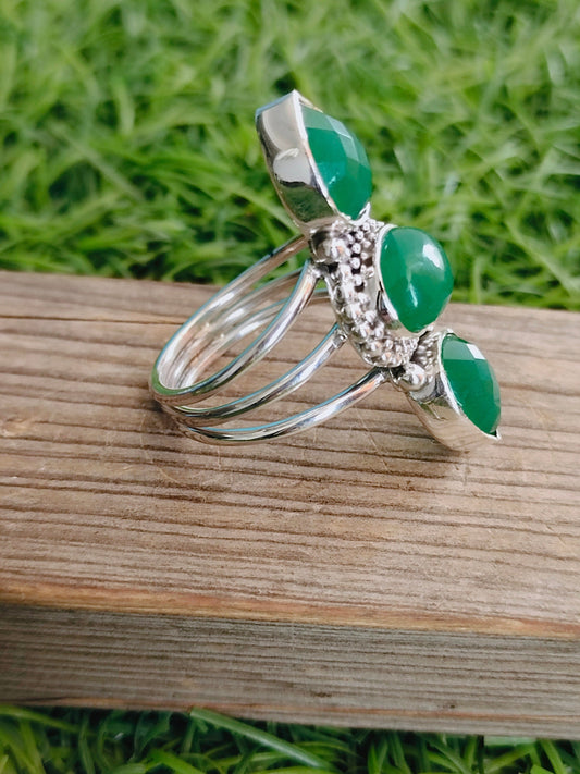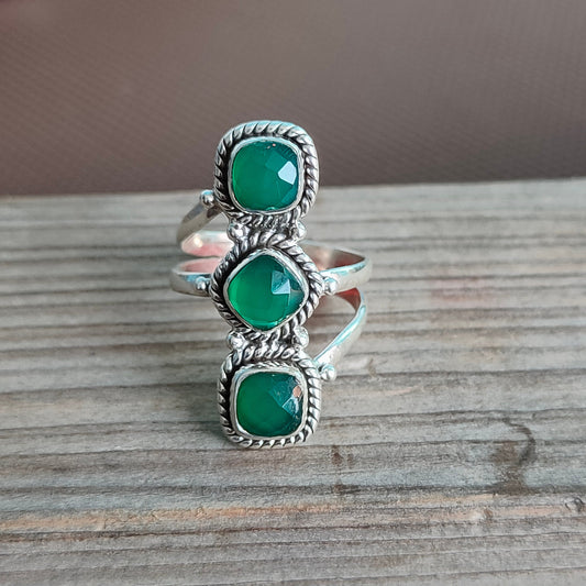 Bague Boho en onyx vert, bague en argent sterling 925 Bague 3 pierres en onyx vert, bague grande taille, bague en pierre verte, bague en argent bijoux, bagues bohèmes
