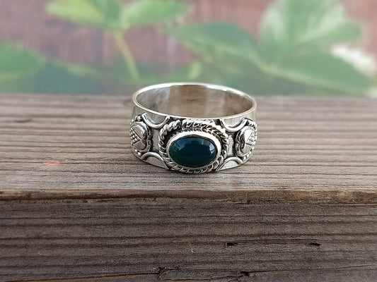 Bague en pierre d'onyx verte, bague en argent sterling, bague en argent à bande unique, bague en argent faite à la main, bague bohème, bande, bague en argent