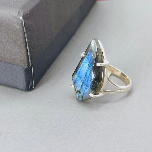 Bague en argent sterling labradorite - Bague en forme de feuille - minimaliste - Labradorite - livraison gratuite - best-seller Etsy