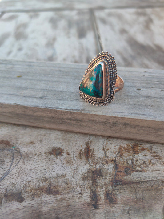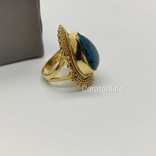 Bague de déclaration Boho - Bague plaquée or crysocola - Bague en argent sterling - Bague bohème fabriquée à la main - Bague bohème - crysocola - Cadeau