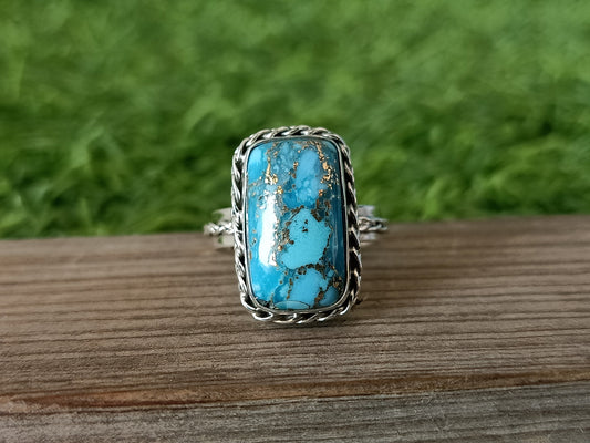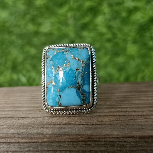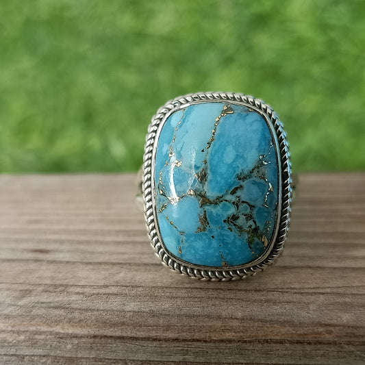 Bague Boho Statement - Bague en argent sterling avec turquoise composite - Bague bohème fabriquée à la main - Bague en turquoise composite - Bagues - Cadeau pour elle
