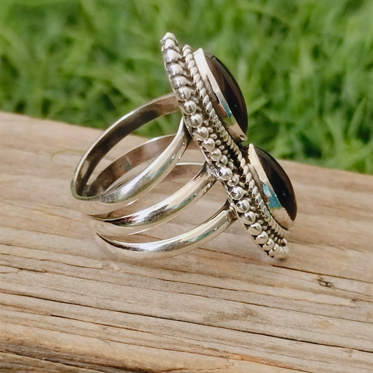 Bague Boho Statement - Bague en argent sterling à double pierre grenat - Bague bohème fabriquée à la main - Argent sterling 925 - Bague à double pierre - Cadeau pour elle