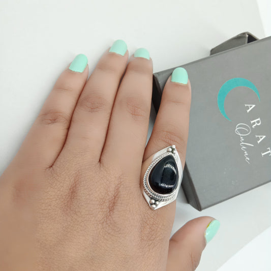 Bague de déclaration Boho - Bague en argent sterling avec pierre d'onyx noir - Bague bohème fabriquée à la main - Bague bohème - Bague en onyx noir - Bagues - Cadeau pour
