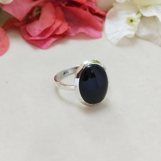 Bague de déclaration Boho - Bague en argent sterling avec pierre d'onyx noir - Bague bohème fabriquée à la main - Bague bohème - Bague en onyx noir - Bagues - Cadeau pour elle