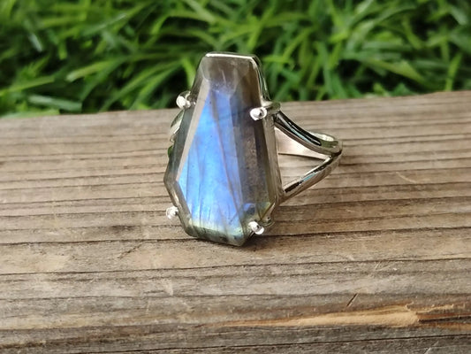 summer gift minimalist coffin tags wedding - Labradorite - Hand Crafted Coffin Shape Ring -Bohemian Labradorite Ring- Rings -Gift for her