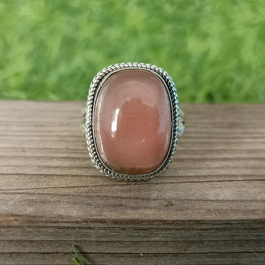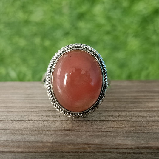 Strawberry Chalcedony Ring -925 Sterling Silver Ring - Hand Crafted Bohemian Ring- Strawberry Chalcedony Cabochon Ring- Rings -Gifts for her