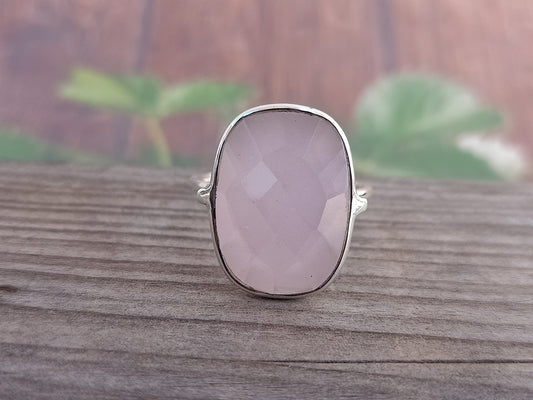 Statement Ring - Baby Pink Quartz Sterling Silver Ring - Hand Crafted Ring-handmade jewelry - Baby Pink Quartz-, Pink calcy ring minimalist
